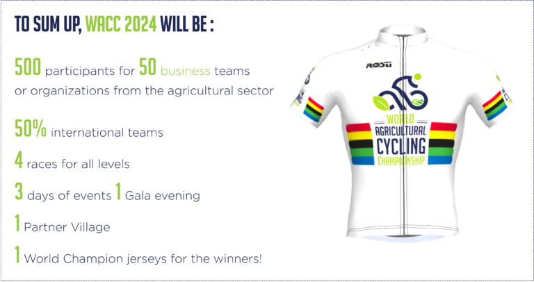 Each category winner will receive the World Agricultural Cycling Competition jersey.